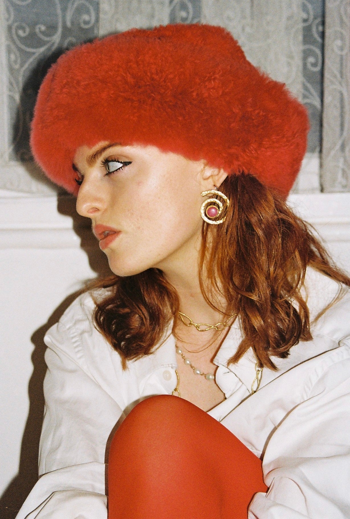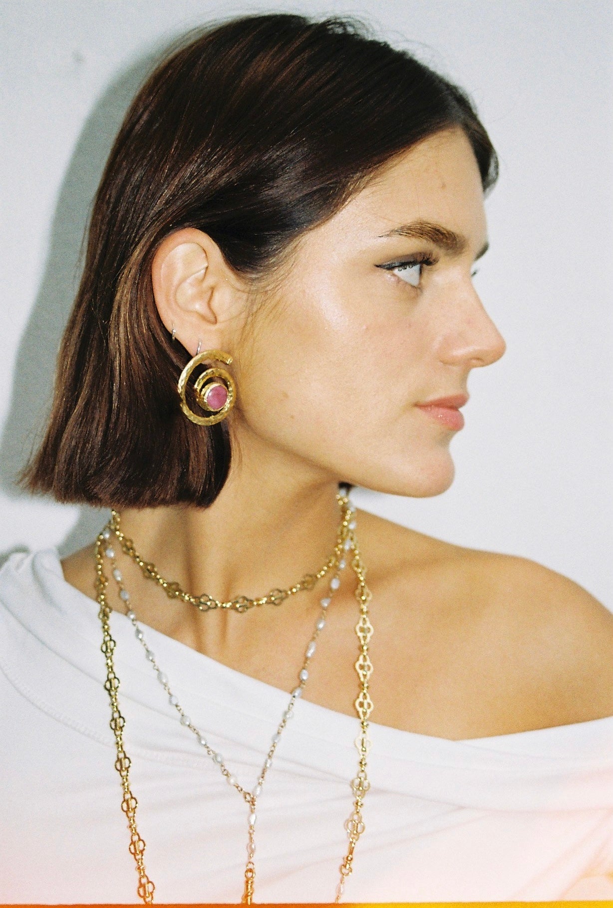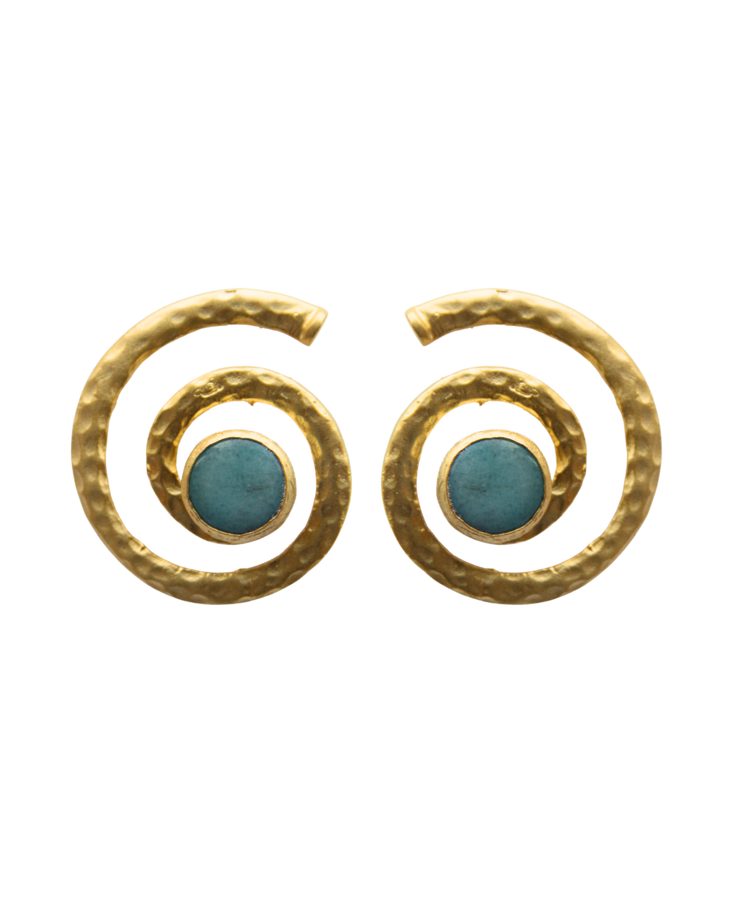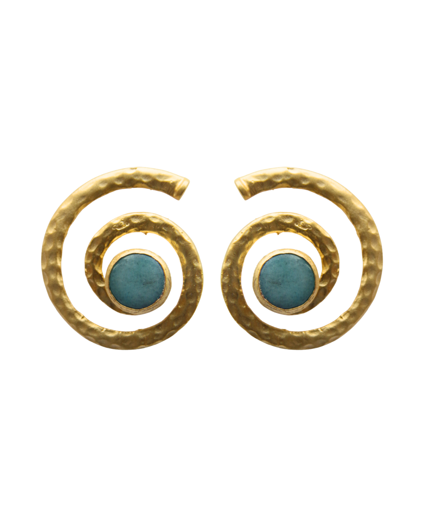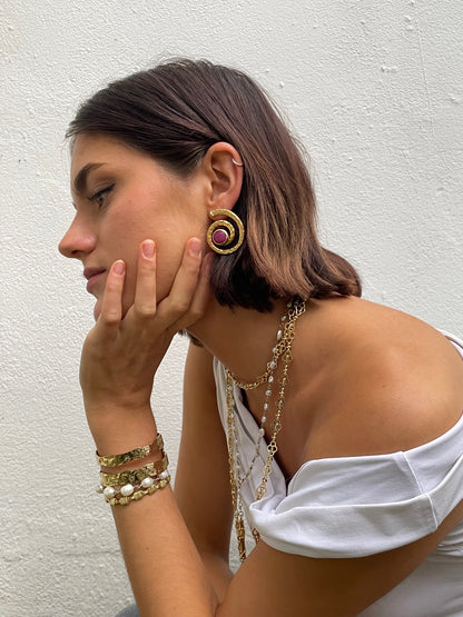 With a hammered gold finish, these spiral earrings add a bold touch to any look. Also available in deep pink.
