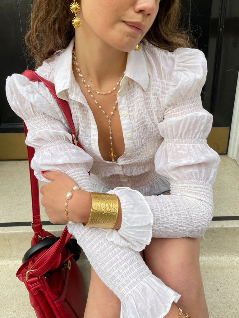 The perfect way to add a pop of gold to any outfit - The Cleo Cuff is the go-to wrist accessory in any season.