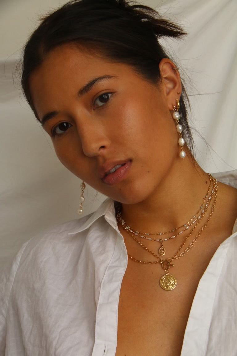These elegant and classic earrings are the perfect finishing touch to any outfit. Made with four large freshwater pearls and gold filled or sterling silver studs, ideal for sensitive ears.